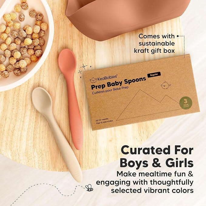 • Safer Silicone - KeaBabies 3-Pack Prep Silicone Baby Spoons Set is made from 100% food-grade, BPA-free silicone. With a topple-free handle and comfort sized scoop, these toddler spoons help BLW toddlers build confidence as they learn self-feeding.