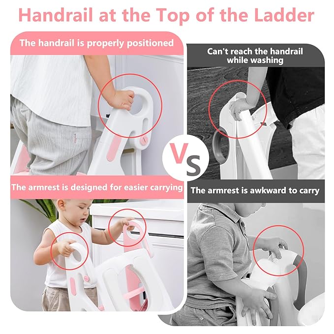 • 【More Details】: Splash guard design prevents urine splashing. The soft seat cushion is removable for easy cleaning. The handles are useful to climb up and down, and kids can hold them while sitting
