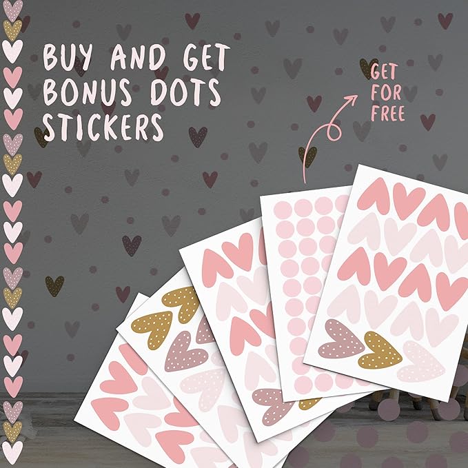 • ❤️ Package Content: Pink hearts wall decals come in a pack of 5 sheets. Includes: polka dots decals and heart stickers.