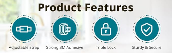• ADHESIVE QUALITY: ALL NEW Stronger 3M adhesive grip offers reliable sticking power preventing lock from being easily pulled off by babies and toddlers. Perfect baby proofing kit!