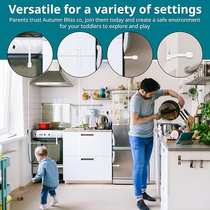 • KEEPING YOUR CHILD SAFE: Properly securing cabinets with high-quality baby safety locks for cabinets is an easy way for parents to child proof their home, baby furniture, and reduce safety risks.