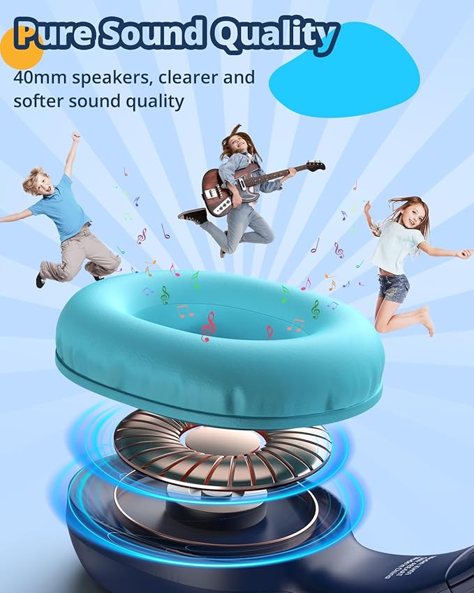 • 【85/93dB Safety Volume Control】: Designed for hearing protection, the volume of kids headphones can be limited to 85dB to prevent damage to children's ears in daily life. When traveling, such as airplane roars, car noise, etc., the volume can reach 93dB, the sound is clearer but still safe.