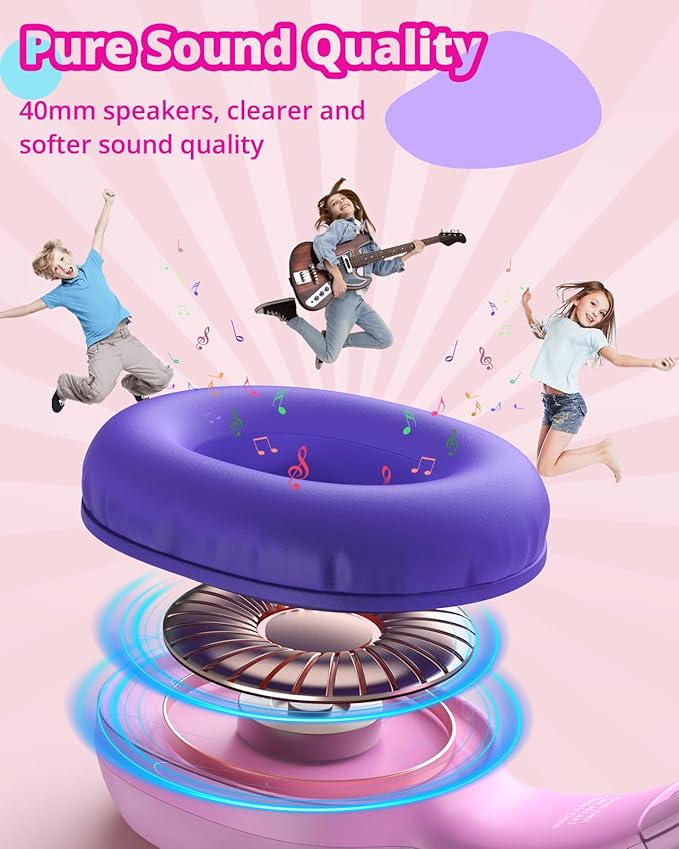 • 【85/93dB Safety Volume Control】: Designed for hearing protection, the volume of kids headphones can be limited to 85dB to prevent damage to children's ears in daily life. When traveling, such as airplane roars, car noise, etc., the volume can reach 93dB, the sound is clearer but still safe.