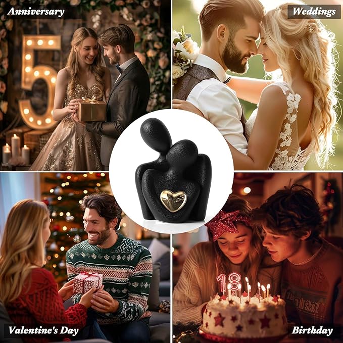 • Couples Bedroom Decor: This ceramic 'Hugging Couple Statue' embodies love and intimacy as the couple figurine shares a gaze, with a shining gold heart at the center, symbolizing a bright and precious bond. It's a mini yet impactful piece that brings a symbolic sparkle to any room, from the living room to the love office decor.