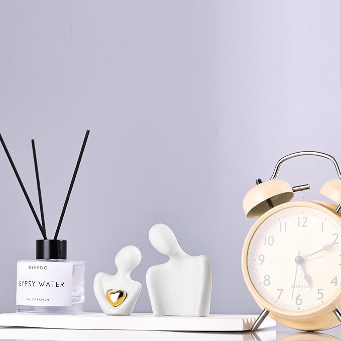 • Couples Bedroom Decor: This ceramic 'Hugging Couple Statue' embodies love and intimacy as the couple figurine shares a gaze, with a shining gold heart at the center, symbolizing a bright and precious bond. It's a mini yet impactful piece that brings a symbolic sparkle to any room, from the living room to the love office decor.