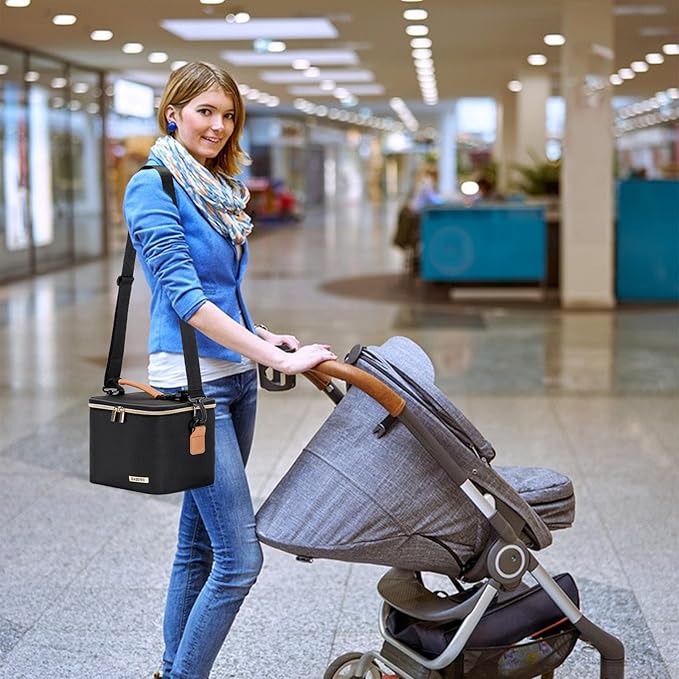 Breastmilk Cooler Bag with Ice Pack Fits 6 Baby Bottles Up to 5 Ounce, Baby Bottle Bag with Shoulder Strap for Nursing Mom Daycare-Black