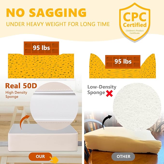 • 【REAL 50D Sponge, ZERO Sagging】The Booster Seat from Sylynvia Brand is of REAL 50D high-density sponge, which ensures softness and comfort while being able to withstand a weight of 80 pounds and will not sag when sitting for a long time, providing excellent support.This means that it has a long service life and your baby can use it from the age of 1 to 8 years old.