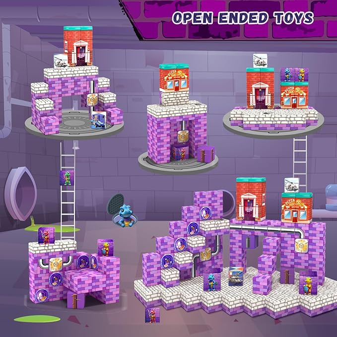 • ● Magnetic Blocks - Dinosaur Adventure Games: Dive into a magnetic action-packed world with our unique magnetic blocks set! The magnetic blocks features four brave dinosaur heroes and vivid city buildings. Kids will get magnetic toys to build their vibrant magnetic blocks cityscape like lively restaurant house and cozy rest area. Unleash your kids' creativity and enjoy hours of role-play fun with these magnetic cubes!