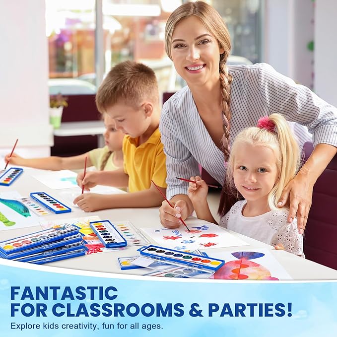 • Washable & Easy to Clean - Our watercolor paints are made with a special washable formula. Even the colorful stains left by children on skin, tables and clothes can be easily washed away, making cleanup a breeze and saving you a lot of time. Perfect for all kids age 3+, classrooms, students, parties, or adult painting projects.