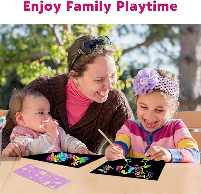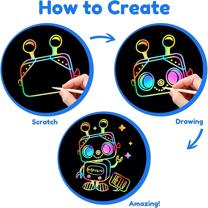 • Awesome Educational Scratch Art Toys Gift: Kids draw as they please, which can not only enhance the imagination of the brain, but also exercise the children's hand-eye coordination and color perception. It's also a communication link between parents and children, sharing their thoughts and love by drawing together! Perfect travel toys art activities gifts for 3 4 5 6 7 8 9 10 year old girls boys.