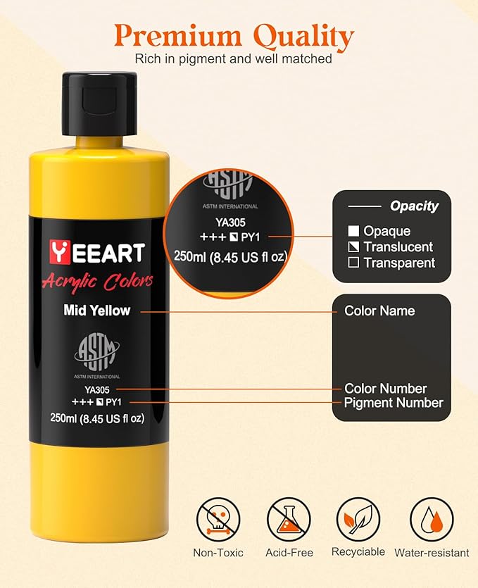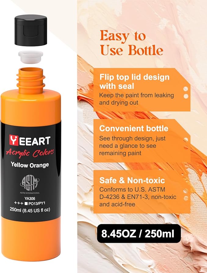 • RICH PIGMENTS: Premium acrylic paints bring bright colors, thick and creamy texture, as well as incredible consistency to painters.The thick texture and high pigments offer strong coverage and excellent ductility, They mix and blend well to come up with more colors, giving you a brilliant texture for your art. ideal for professional artists, beginers, painting lovers and kids