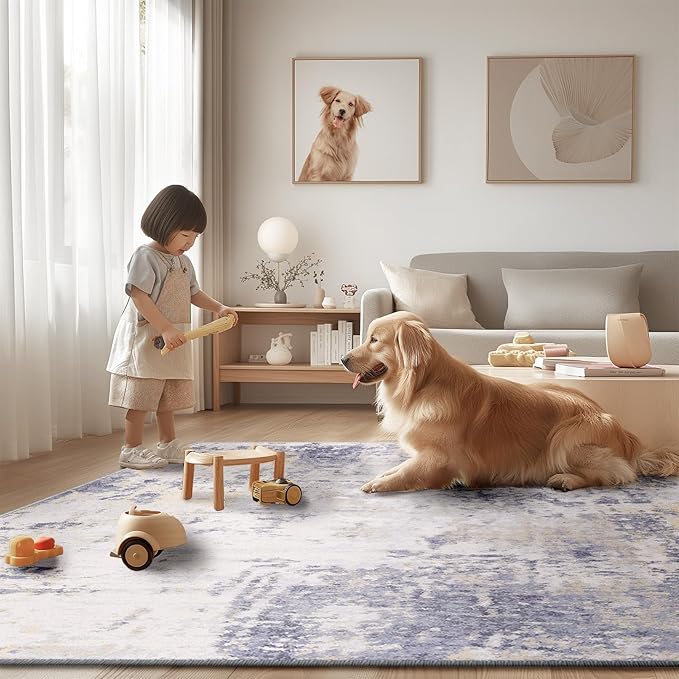 • Tides Series – Effortless style that flows with your life.This modern machine-washable non-slip rug features reinforced edges and a low-pile design that resists dirt. Its water-repellent surface makes spills easy to clean - liquids bead up for quick wiping. Simply machine wash in cold water (no bleach) to refresh. The non-slip backing keeps it securely in place. A perfect blend of function and contemporary design for active homes.