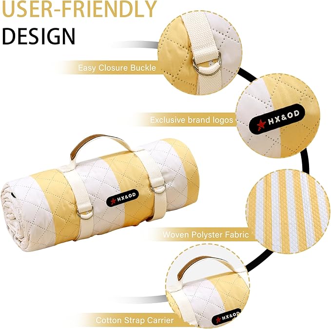 • ☀ 【Waterproof & Machine Washable】Outdoor picnic blanket is super easy to clean due to its durable and waterproof backing, easily shake & wipe off dirt, mud, wet grass, and beach sand. And you could put it into washing machine to save your time and free both hands.