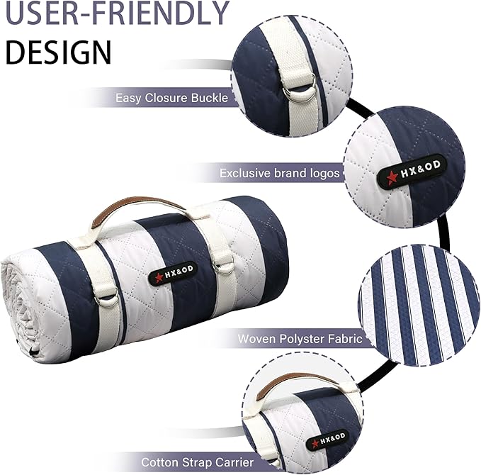 • ☀ 【Waterproof & Machine Washable】Outdoor picnic blanket is super easy to clean due to its durable and waterproof backing, easily shake & wipe off dirt, mud, wet grass, and beach sand. And you could put it into washing machine to save your time and free both hands.