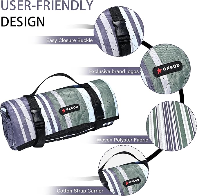 • ☀ 【Waterproof & Machine Washable】Outdoor picnic blanket is super easy to clean due to its durable and waterproof backing, easily shake & wipe off dirt, mud, wet grass, and beach sand. And you could put it into washing machine to save your time and free both hands.