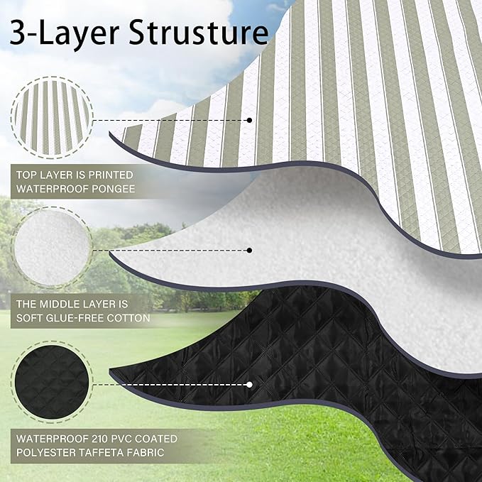 • ☀ 【Soft and Durable with 3-Layers】The picnic blanket top layer is printed waterproof pongee, the middle layer is soft glue-free cotton, and the bottom layer is waterproof black Oxford cloth. Perfectly suitable for siting or lying on grass, beach, floor or any kindly of surface, giving you soft and comfortable feelings.