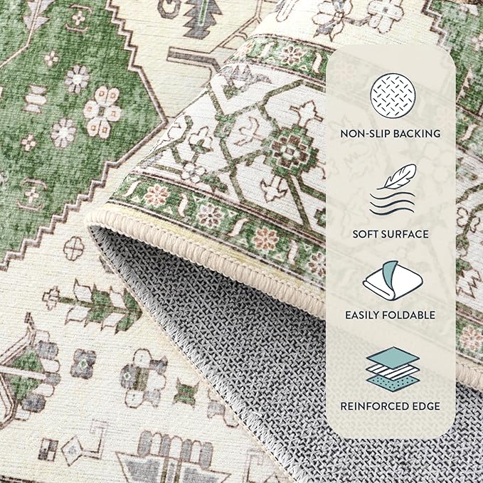 Lahome Boho Washable Hallway Runner Rug - 2x4 Rugs for Bedroom Non-Slip for Entrance (Green, 2'x4')