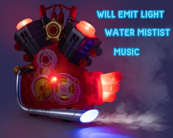 • Very realistic motorcycle engine model with sound and light. It is worth noting that when you pour water into the exhaust pipe, the turnng handle will not only emit sound and light, but also have apary, which is to simulate the jet effect after the motorcycle starts, and turn the handle for four times in a row to get a more realistic motorcycle starting sound effect and music. Such fun-filled toys are sure to attract children's interest.