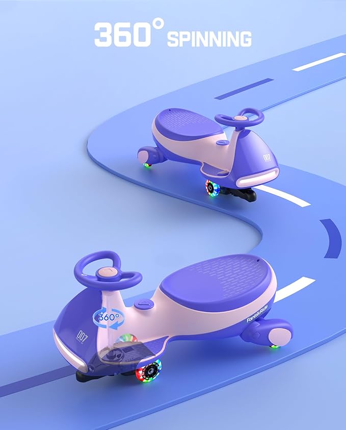 • Flashing Wheels and Bluetooth: When you slide on the wiggle car with pedals, the front light guide you forward, and the magnetic flash wheels flash with colorful lights. Light up PU wheels no batteries needed, provide shock absorption, glide smoothly and do not scratch the floor. Connect to Bluetooth to freely adjust the volume and songs, adding fun to your child's driving experience