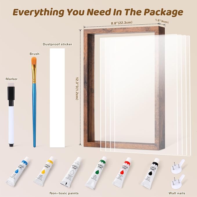 • DIY FAMILY KEEPSAKE FRAME: Create a timeless family treasure using our all-in-one DIY handprint kit! Quickly and easily capture handprints, even beloved pet paws on premium acrylic sheet. Then add heartfelt messages or names using the marker pen. Display your unique artwork proudly in the sturdy wooden frame included with the kit which will look perfect even after years to come. A unique keepsake that tells your family's story