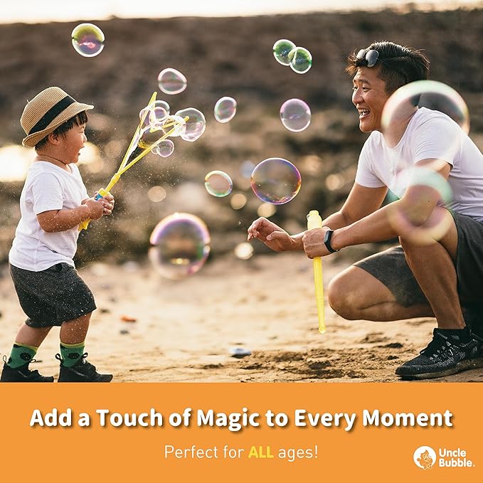 • 【PERFECT FOR ANY OCCASION】- Ideal for outdoor activities, parties, festivals, and more, Uncle Bubble's bubble solution is the perfect addition to any event. Whether it's a birthday party, wedding, or school classroom activity, our bubble solution ensures endless entertainment for everyone.