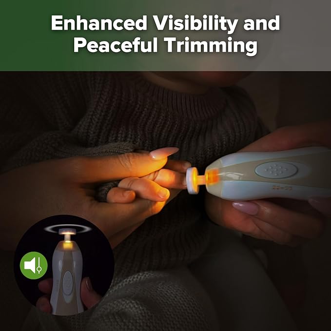 haakaa Baby Nail Care Electric Baby Nail File Kit with LED Light, Baby Nail Clippers for Newborn/Infants/Adults Toenails and Fingernails, 6 Replacement Heads & Storage Case, Acorn
