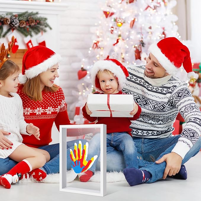 Family Handprint Kit, Hand Prints Keepsake Frame, DIY Craft Gift for New Parents & Mom & Baby, Grandparents, Mother's Day, Father's Day, Adoption Day, Anniversary, 6 Non -Toxic Paints (White)