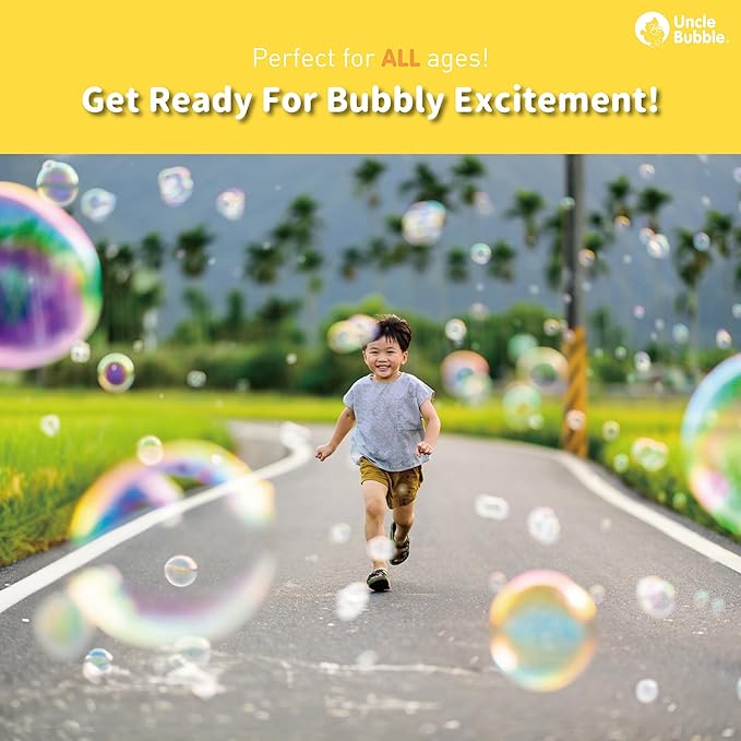 • 【PERFECT FOR ANY OCCASION】- Ideal for outdoor activities, parties, festivals, and more, Uncle Bubble's bubble solution is the perfect addition to any event. Whether it's a birthday party, wedding, or school classroom activity, our bubble solution ensures endless entertainment for everyone.