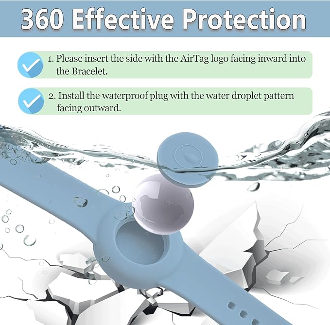 • 【High-Quality Silicone】The waterproof AirTag wristband is made of skin-friendly soft silicone material, suitable for all-day wear. In addition, the airtag strap is lightweight, breathable, and washable. Fully covered with anti-scratch, anti-drop, and waterproof design, especially when the Airtag holder is splashed by water and children wash their hands, the Airtag inside will not be damaged