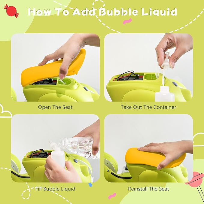 • Comfortable Children Balance Motorbike with Remote & Bubble Machine: Our ride-on toy features a non-slip soft handlebar designed for small hands, while the wider and thicker seat offers excellent shock absorption. With durable EVA wider tires that are noiseless and gentle on wooden floors, and 4 wheels for a smooth ride on various surfaces, it's perfect for both indoor and outdoor activities.