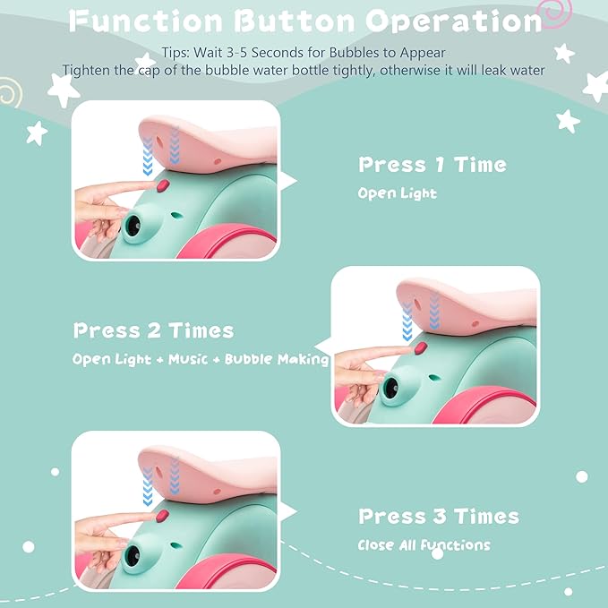 • Ensuring Safety First: Our electric baby balance bike with bubble maker ride on toy not only promotes fitness and balance in young children but also encourages babies to utilize their legs, thereby strengthening leg muscles and establishing healthy exercise habits from an early age. It fosters balance, coordination, self-confidence, and independence. Featuring a lower floor-to-seat height, even the smallest tots can enjoy a smooth and secure ride-on experience.