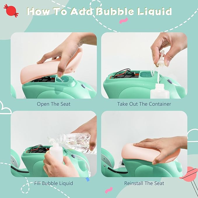 • Comfortable children's balanced motorcycle with remote control and bubble machine: Our riding toy features anti slip handles designed specifically for small hands, seats that conform to human body structure, making it more comfortable for children to sit on. The four wheels can ride smoothly on various surfaces, making it perfect for indoor and outdoor activities.