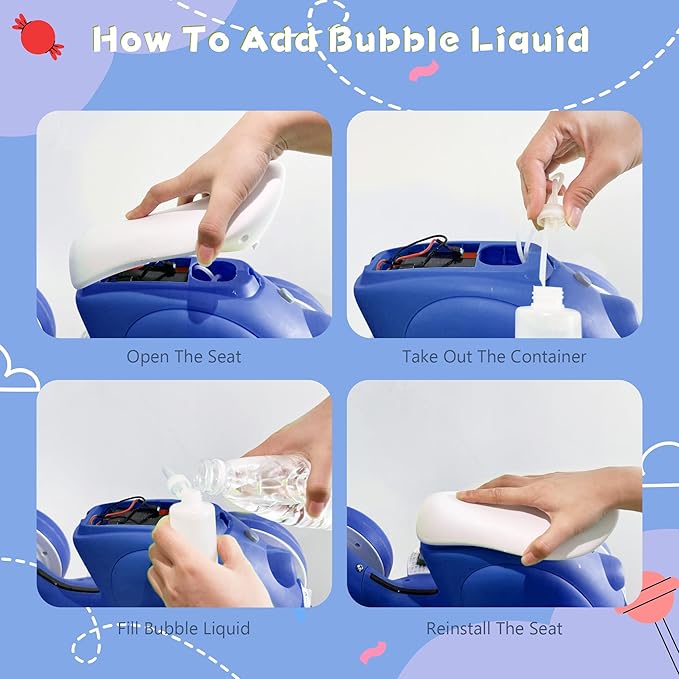 • Comfortable Children Balance Motorbike with Remote & Bubble Machine: Our ride-on toy features a non-slip soft handlebar designed for small hands, while the wider and thicker seat offers excellent shock absorption. With durable EVA wider tires that are noiseless and gentle on wooden floors, and 4 wheels for a smooth ride on various surfaces, it's perfect for both indoor and outdoor activities.