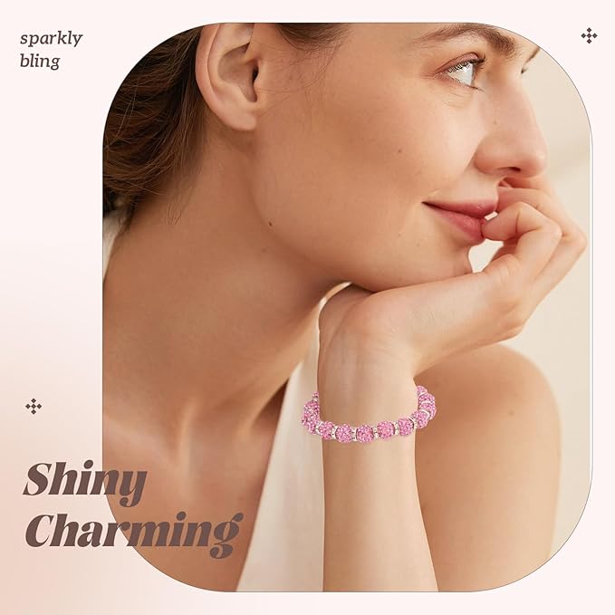 200pcs 10mm Rhinestone Beads for Jewelry Making, Pink Shiny Round Disco Ball Beads Bulk, Sparkle Crystal Clay Christmas for Bracelet Baseball Necklace Earring Crafting and DIY