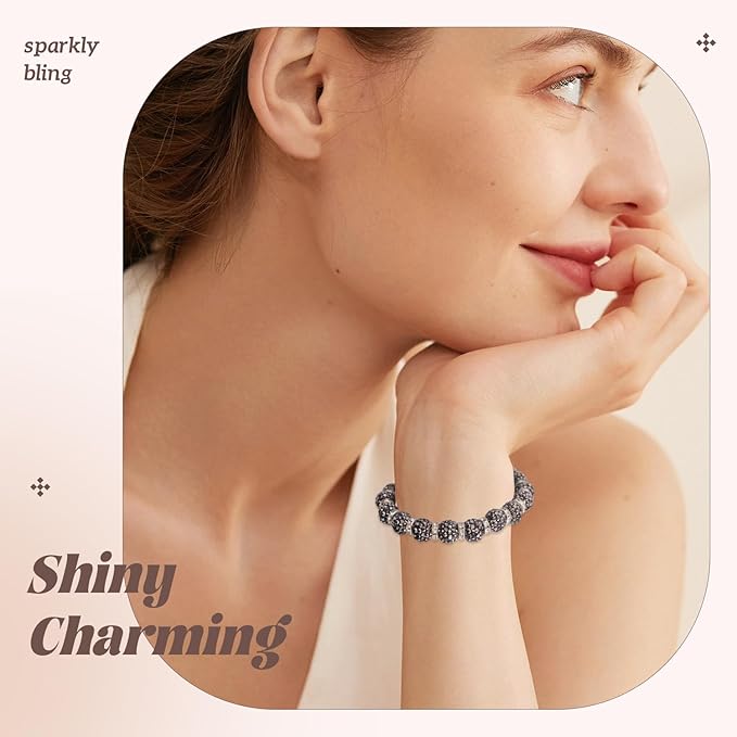 105pcs 10mm Rhinestone Beads for Jewelry Making, Hematite Shiny Round Disco Ball Beads Bulk, Sparkle Crystal Clay Christmas for Bracelet Baseball Necklace Earring Crafting and DIY