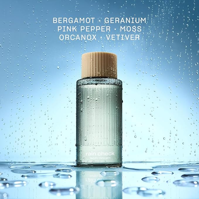 • "RAIN CHECK: Nothing smells better than canceled plans. The Everything Wash detergent removes dirt, stains, and odors, while the Rain Check fragrance leaves your laundry clean and crisp. With bergamot, geranium, pink pepper, moss, orcanox, and vetiver, this fresh combination smells like the silver lining after a rainy day.