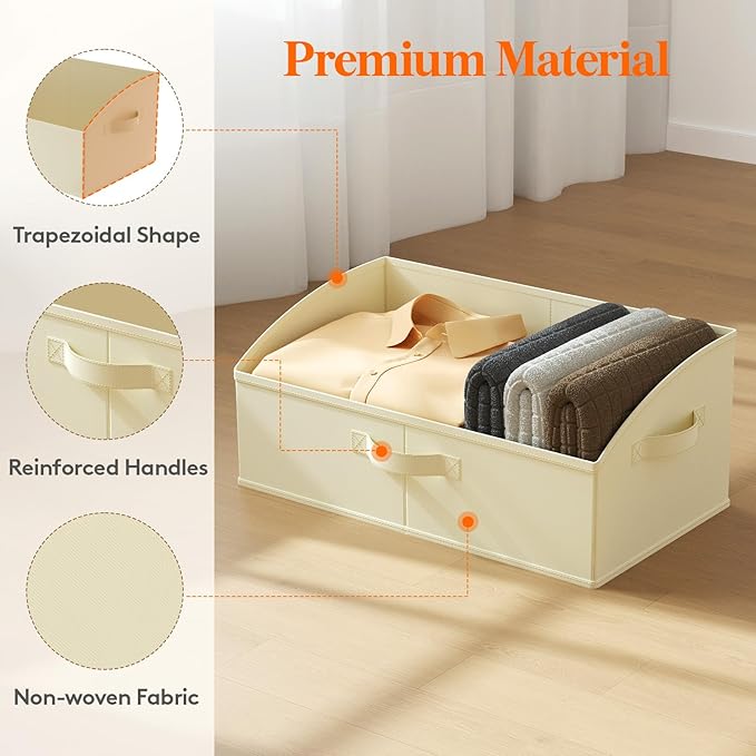 Lifewit Storage Baskets for Shelves, 6 Packs Non-woven Fabric Trapezoid Closet Organizer Bins with Handles, Foldable Clothing Containers Box for Clothes, Toy, Towel, Book, DVD, Hats, Large-Beige