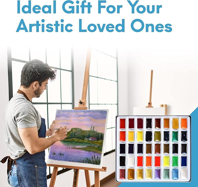 • Vivid Watercolor Collection: Dive into creativity with 40 stunning watercolor paints including 26 classic colors, 8 shimmering metallics, and 6 eye-popping neons. This watercolor set for adults lets you achieve the perfect depth and intensity in every stroke