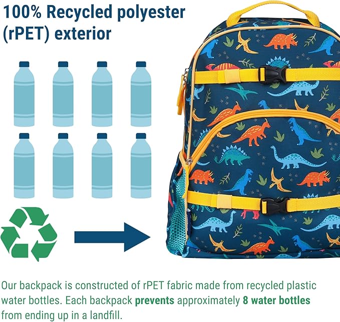 Wildkin ECO rPET 17-inch Large Backpack – Sustainable, Padded, Adjustable – Jurassic Dinosaurs