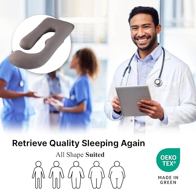 • Hypoallergenic Properties: The pillow’s materials are hypoallergenic, OEKO-TEX STANDARD 100 certified product, ensuring that it’s safe for individuals with sensitive skin or allergies. This feature is particularly beneficial for those with heightened sensitivity during pregnancy, offering peace of mind knowing that the pillow is gentle on the skin. The hypoallergenic filling and cover contribute to a clean and comfortable sleeping environment, reducing the risk of irritation or allergic reactions.