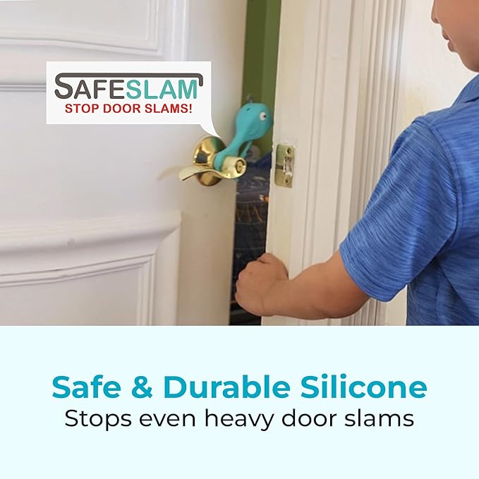 • πŸ”’ 𝐏𝐑𝐄𝐕𝐄𝐍𝐓 π‹πŽπ”πƒ πƒπŽπŽπ‘ π’π‹π€πŒπ’ 𝐀𝐍𝐃 ππ€πˆππ…π”π‹ πˆππ”π‘πˆπ„π’ SAFESLAM is the β€œalways on” door slam stopper. Other finger pinch guards must be removed to close the door so there is NO SAFETY when the door opens! But SAFESLAM is ready to protect every time the door opens! With SAFESLAM you simply turn the knob normally, so doors close quietly and safely, every time.