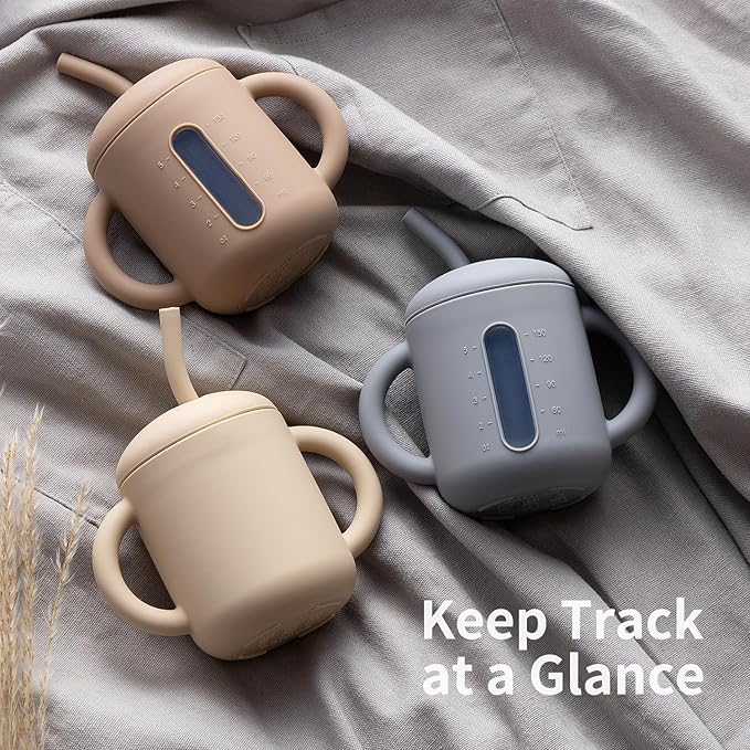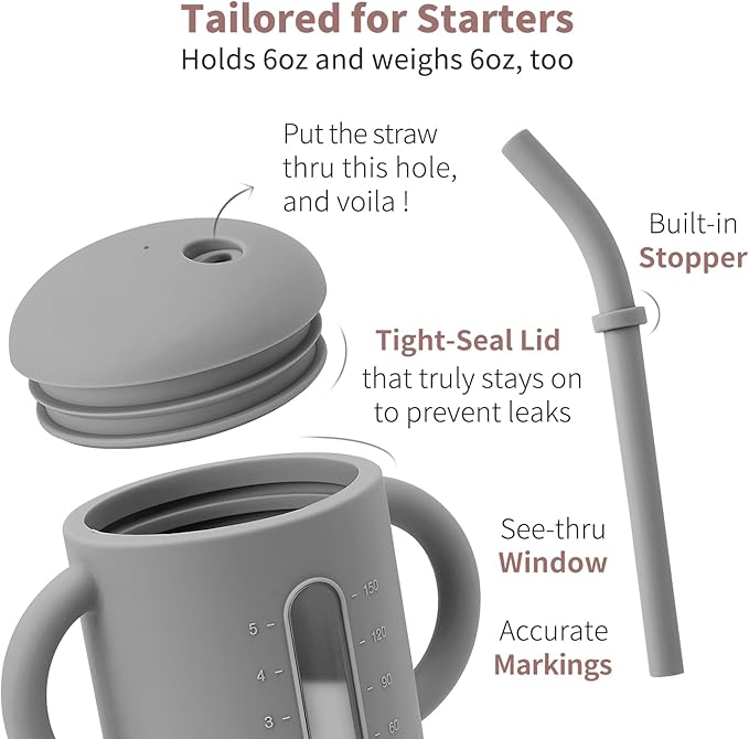 SAMiGO Silicone Sippy Cup, Baby Straw Cup for 6 12 18 Months, Sippy Cup with Straw for Toddlers 1-3 Years, Baby Water Cup for Drinking and Training, 6 oz