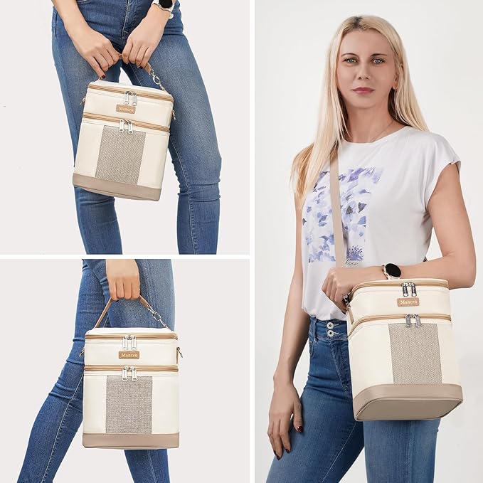 • Double Layer Design: Measuring 8.66 x 7.08 x 11 inches, the breastmilk cooler bag features a smart double-layer design, allowing you to store up to 6 baby bottles (up to 9 oz) and a wearable breast pump or snacks. Mancro bottle bag can be used as both a breastmilk cooler bag and a lunch bag, ensuring your essentials are organized and accessible.