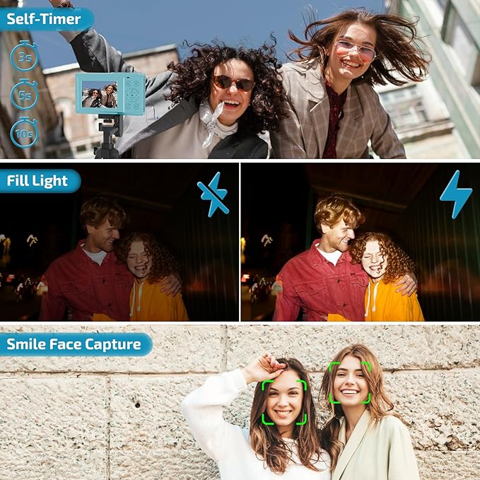 • Capture Stunning Moments with Ease: Small Camera features an advanced CMOS image sensor, delivering 4K video and 44MP photos—so you can snap vivid, lifelike images in an instant. Just press the shutter for one second, and let the camera do the rest.Perfect for beginners and kids, it’s effortless fun!