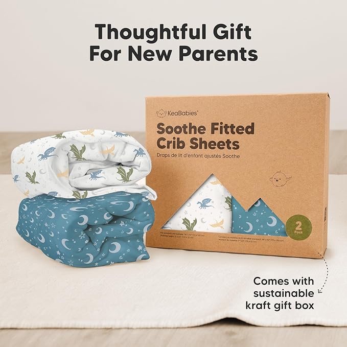 • 2-Pack Baby Crib Sheets - KeaBabies Soothe Fitted Crib Sheets for boys and girls; fit standard crib mattresses (52"x28" with height 3" to 8") perfectly, offering your baby a safe and restful sleep.