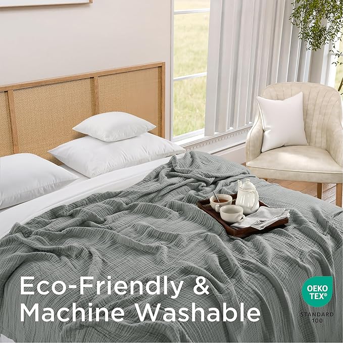 • Versatile Use: Whether you need a cozy throw for your couch, an extra layer on your bed, or a lightweight blanket for outdoor picnics, this muslin throw blanket is versatile enough to meet all your needs.