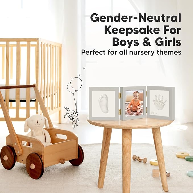 Baby Shower Gifts for Boys, Girls - Baby Hand and Footprint Kit, Newborn Handprint Kit, Keepsake Photo Frame, Nursery Picture Frame, Gender-Neutral Newborn Keepsake Gifts (Cloud Gray)