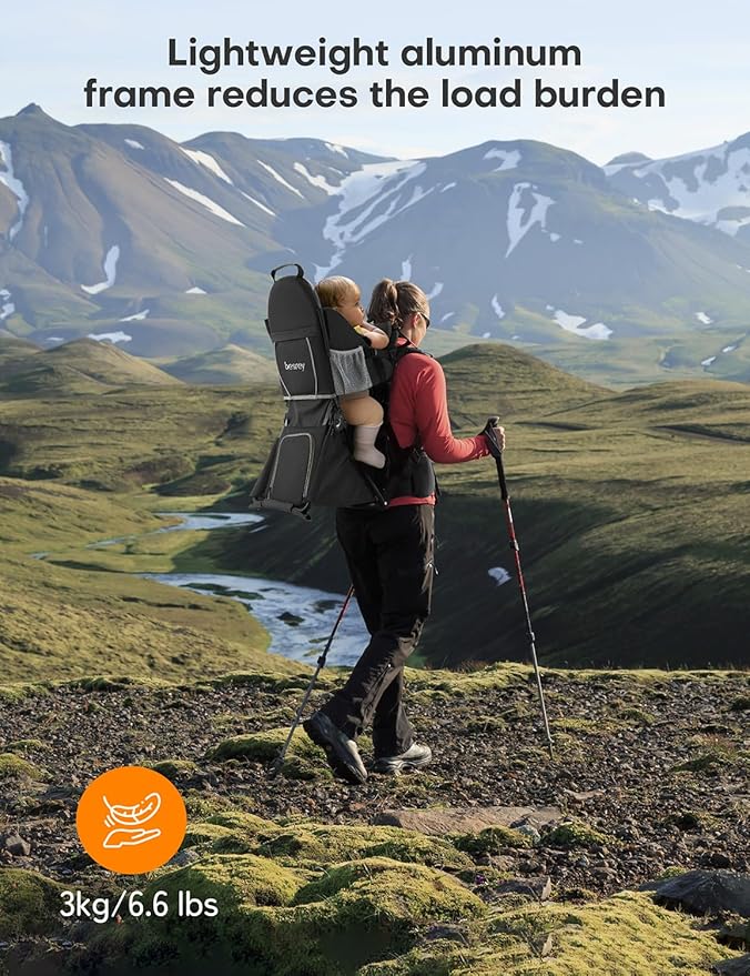 • Carry Your Kid Safely & with Ease: besrey hiking backpack carrier is specially made keeping in mind the well-being of the toddler. It has 5-point seat belts which are made of super soft material and the flexible straps and stirrups keeps the toddler in a comfortable and safe position while enjoy the trip.