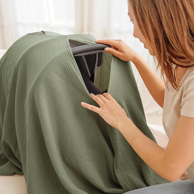 Konssy Muslin Nursing Cover for Breastfeeding, 360° Full Privacy Breathable 100% Cotton Breastfeeding Cover, Multi-use Carseat Canopy(Fog Green)