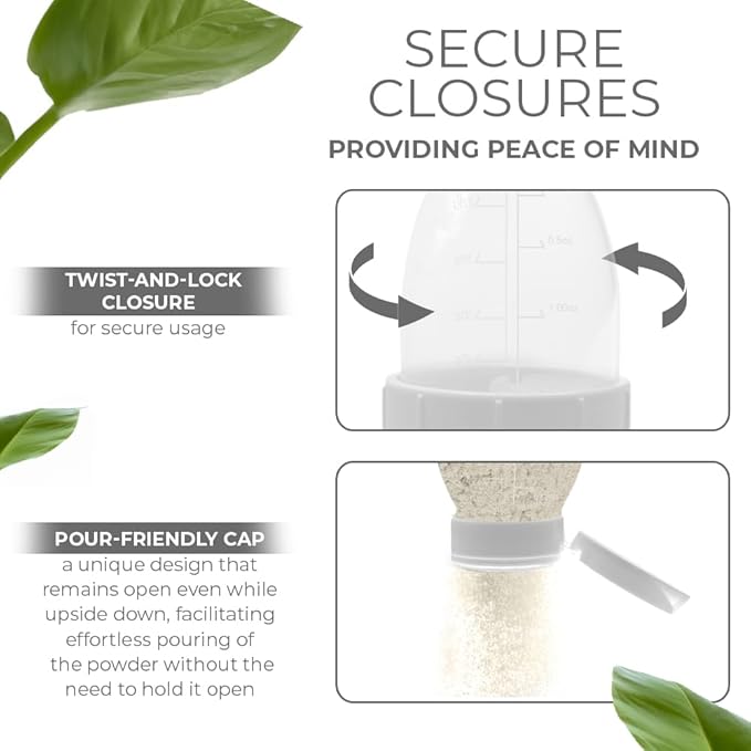 • ✅[Pour-Friendly Cap] The cap features a unique design that remains open even while upside down, facilitating effortless pouring of the powder without the need to hold it open.